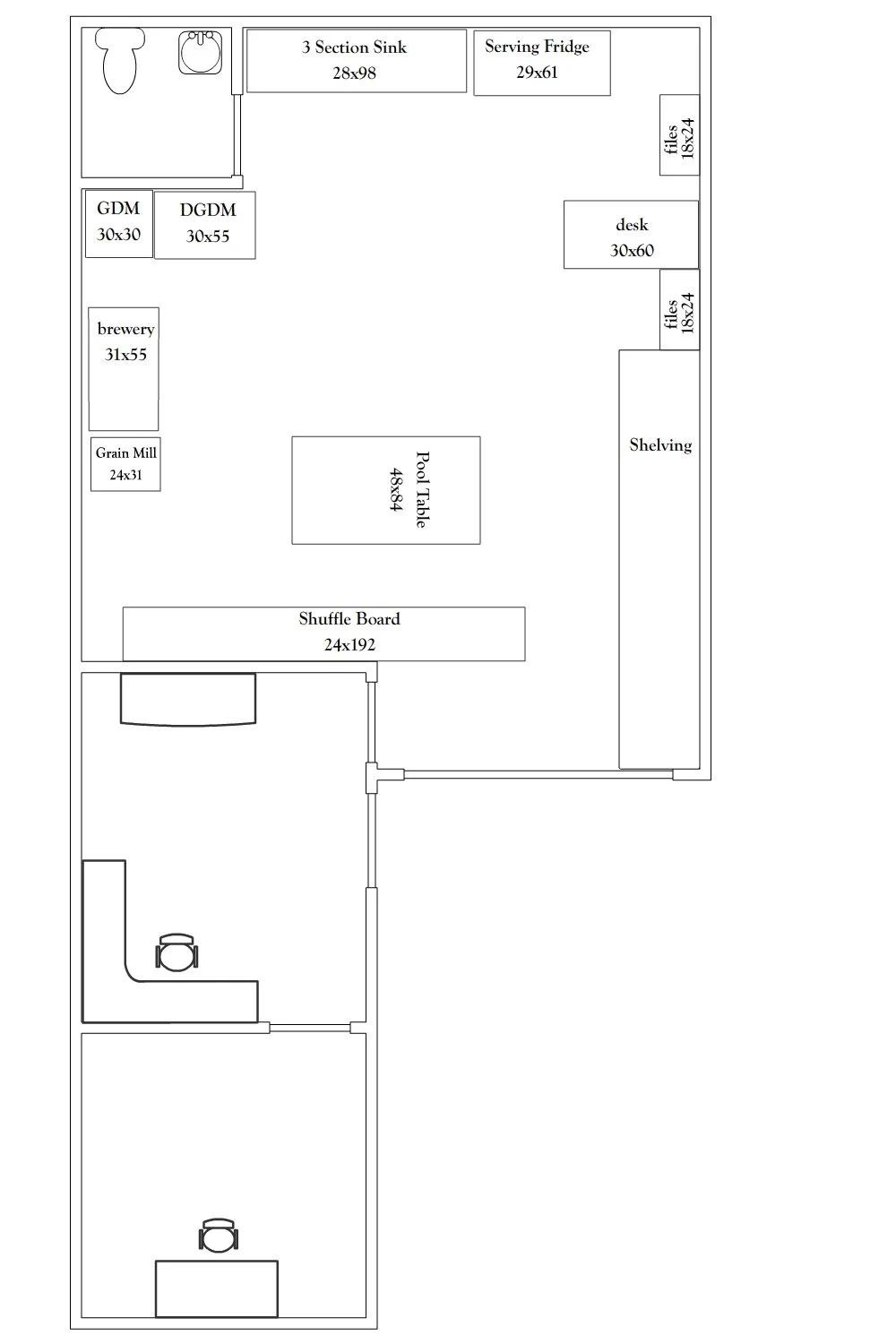 Today was a busy day. I got the electricity, WiFi, and telephones up and running. Once all of that was set up I was able to begin working on drafting a blue print to comply with the DEH, TTB, and ABC.